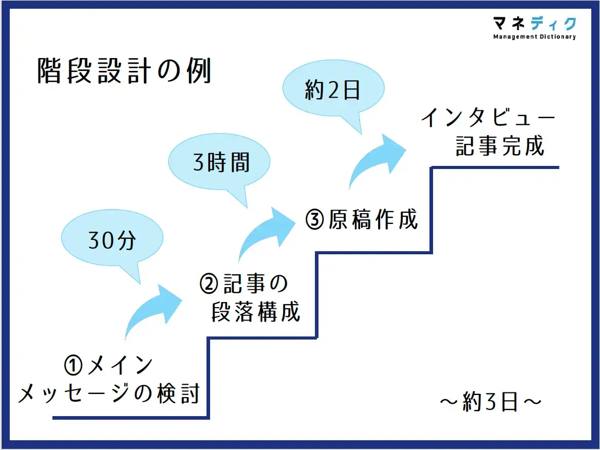 解決策は、いきなり大きな仕事を丸投げするのではなく、「繊細に任せる」ことです。これは、最終的なゴールまでの道のりをいくつかの小さなステップに分解し、新人の能力に合わせて段階的に任せていく手法で、「階段設計」とも呼ばれます。