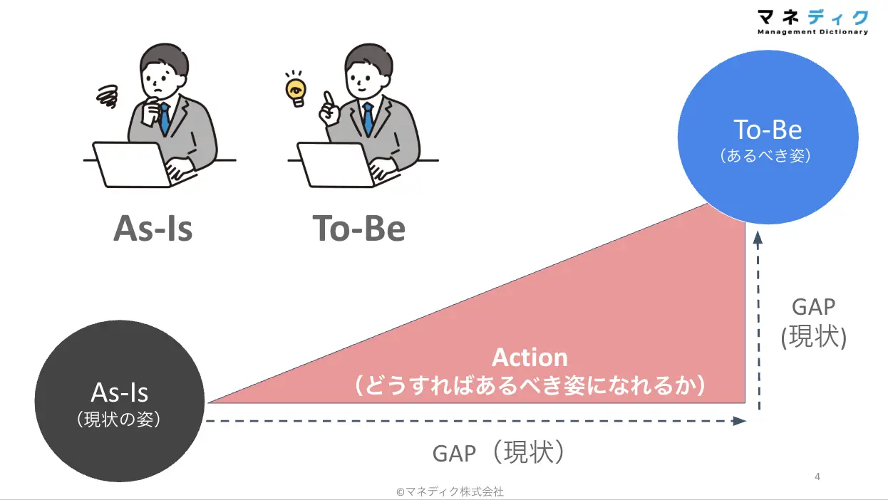 未来の理想像が見えたら、そこから逆算して「今、何をすべきか」を具体的な行動目標に落とし込みます。