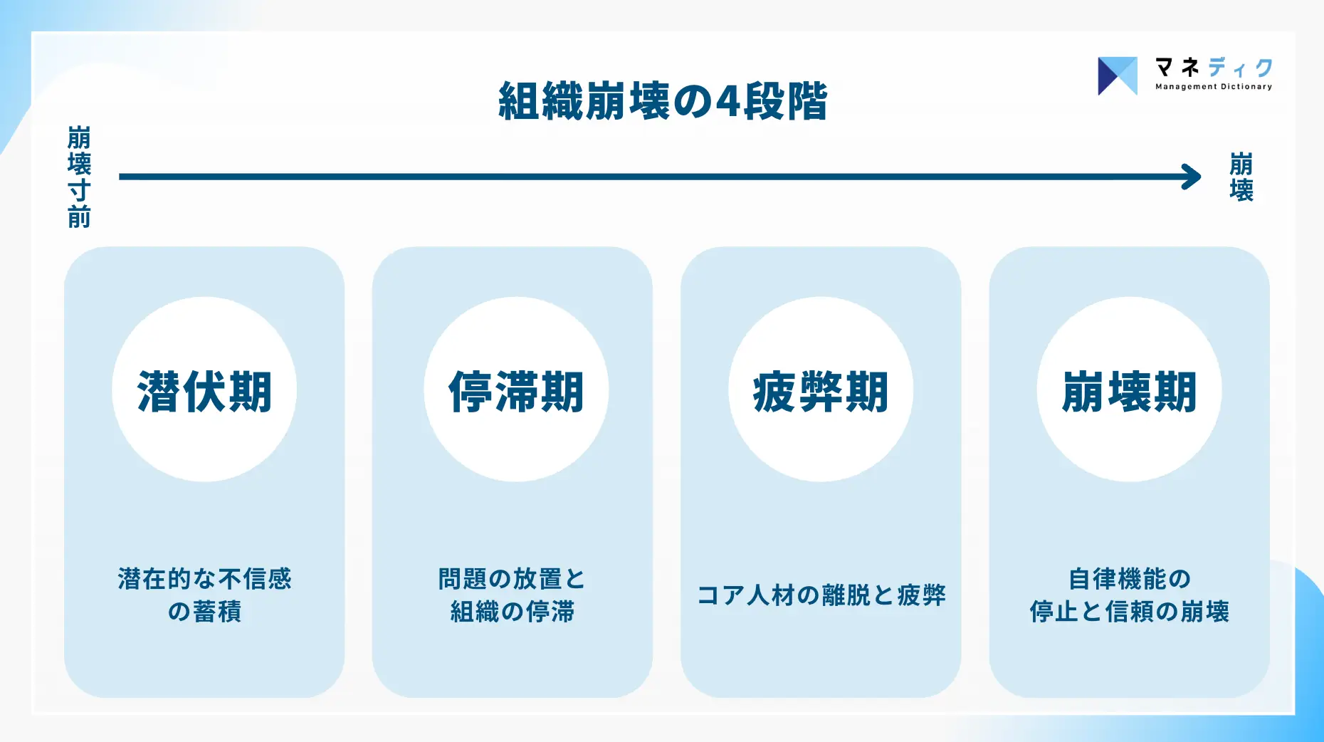 組織崩壊は一気に起こるものではなく、4つの段階を経て進行します。